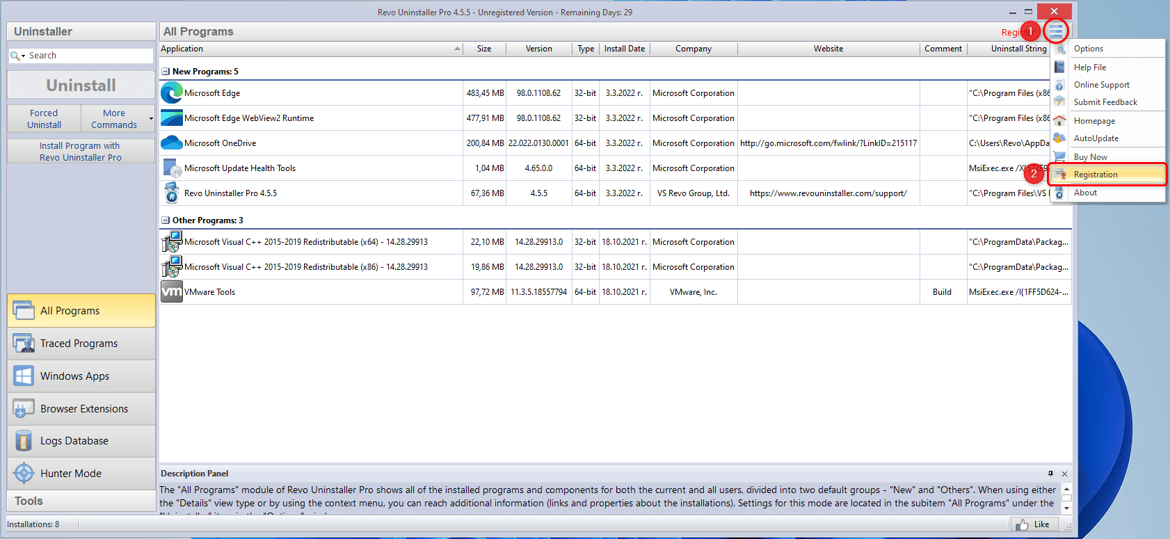 Revo Uninstaller - это профессиональный инструмент удаления, который отображает все программы и компоненты, установленные пользователями в настоящее время, и почти все программное обеспечение на вашем компьютере, которое может быть удалено, чтобы помочь вам лучше управлять компьютером и чистой системой.