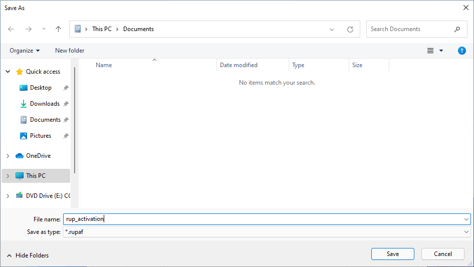 Используйте выбранное вами имя для сохранения файла RUPAF в удобном для вас месте.